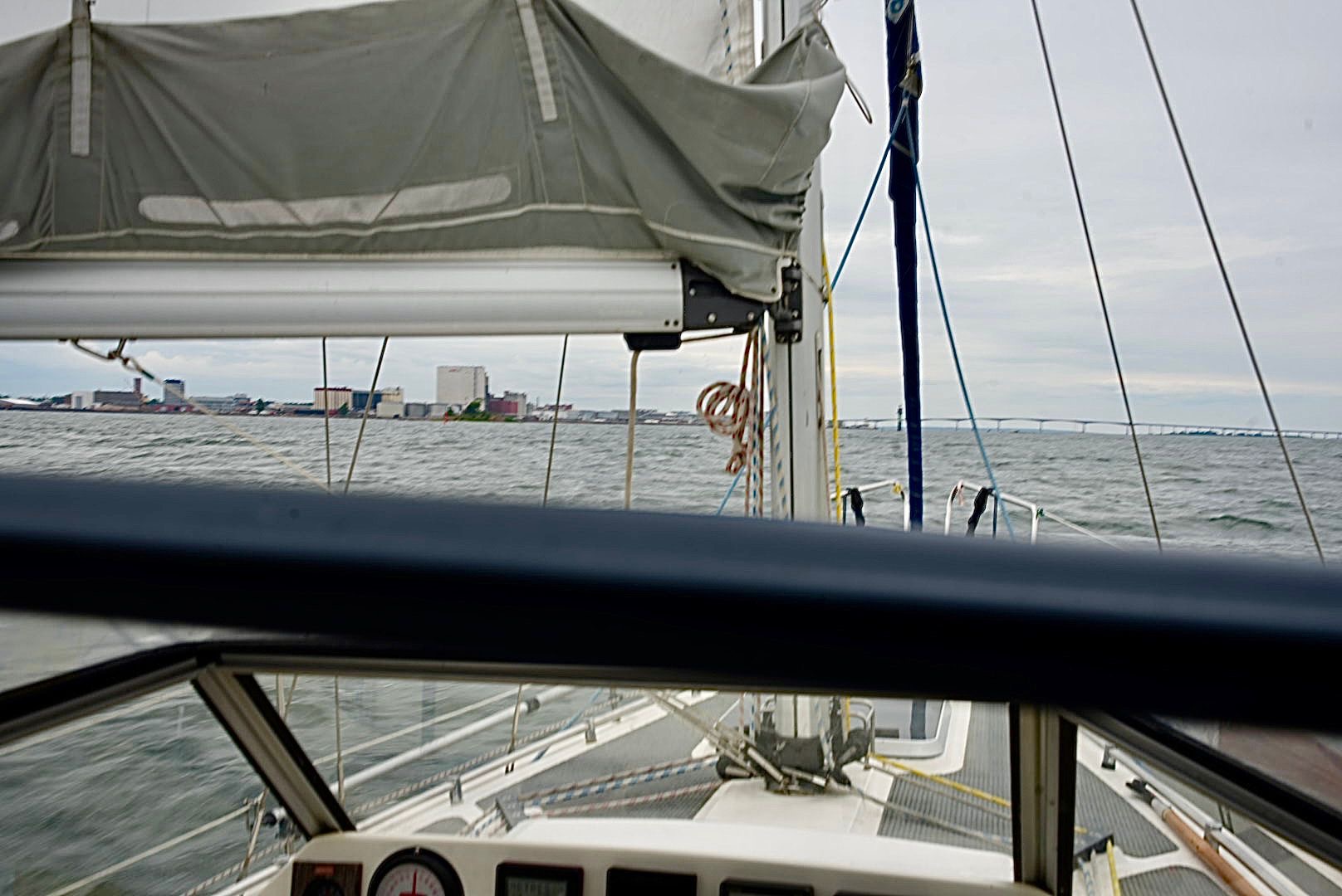 Kurz vor der Ölandbrücke geht es rein zur Marina. Und pünktlich zum Anlegemanöver kommt der Regen.