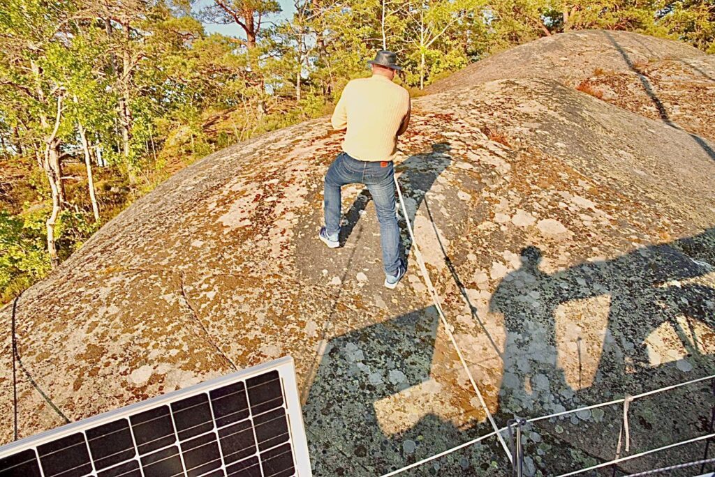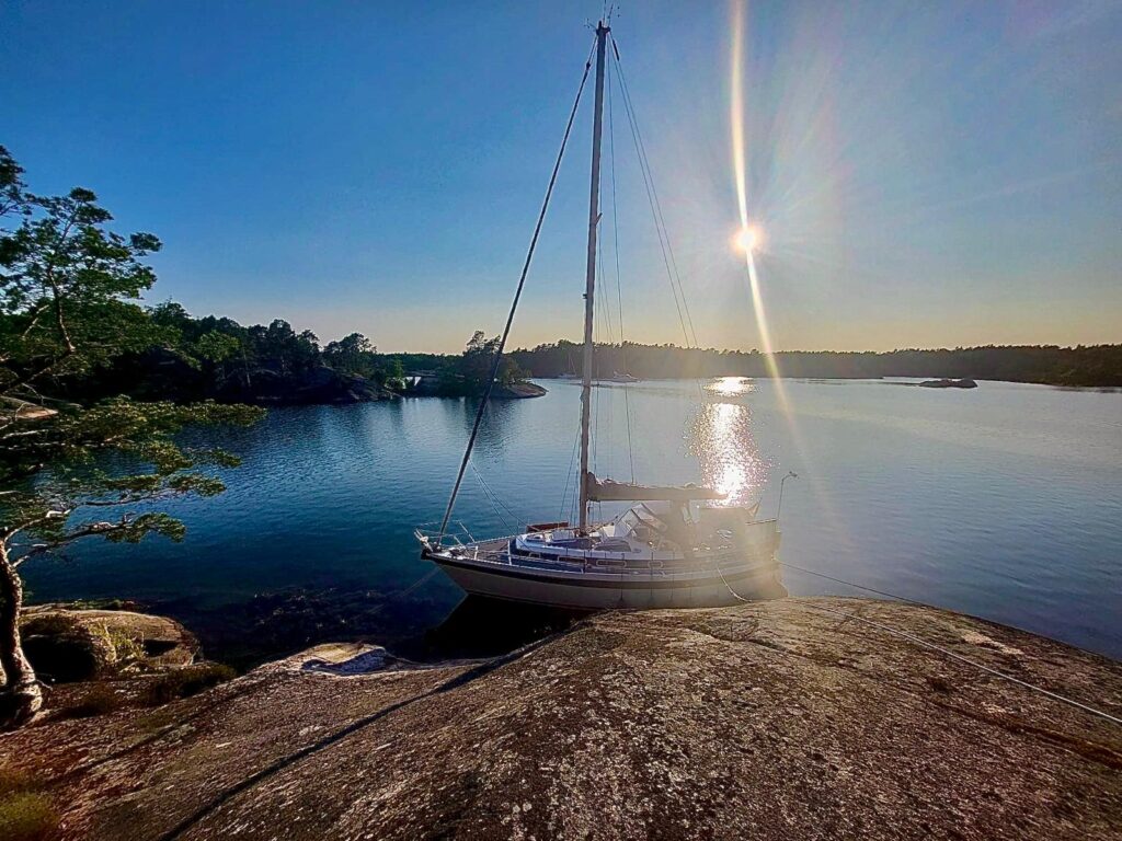 Durch die Schären hinaus aufs Wasser war kreuzen angesagt. (Motoren ist was für Weicheier.) Das ging recht gut, auch wenn der Wind nicht so recht wusste, was er uns Gutes tun sollte. Dafür gab’s Wellen ohne großen Wind – komisch. Ein Stück „Dänisches Segeln“ war dann doch notwendig, aber das letzte Stück konnten wir super segeln.