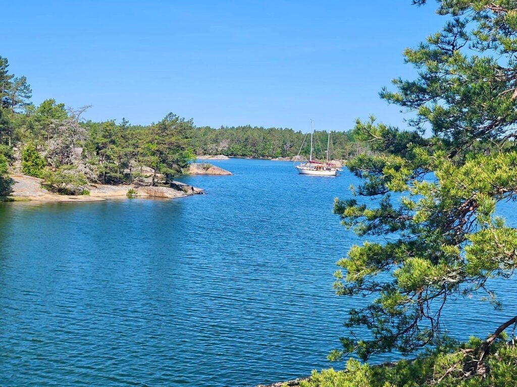 Nun das Wichtigste: kurze Strecke, ca. 16 Seemeilen, bei unbeständigem Wind aus Nord Nord Ost … Da musste doch mal das Motörchen mitarbeiten. Die Landschaft ist einfach der Hammer. Diese Eindrücke kann keine Kamera einfangen. Die See war entspannt. Da konnten wir uns auch mal maskulin anschweigen.