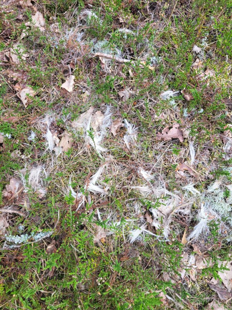 Wege sind hier Fehlanzeige. Wildpfade zeigen den Weg. Dann, der Ort des Geschehens – ein Leichenteil. Schädel und Teile der Wirbelsäule sind vorhanden. Hier muss der Fachmann ran. Anhand des Zahnstatus handelt es sich um ein junges Opfer, weiblich, da die Hörner fehlen. Walter fand dann den restlichen Kadaver an einem anderen Ort … passt. Fundort ist jedoch nicht gleich Tatort. An einer dritten Stelle lag das Fell, fein säuberlich gerupft. Fall geklärt. 🙂