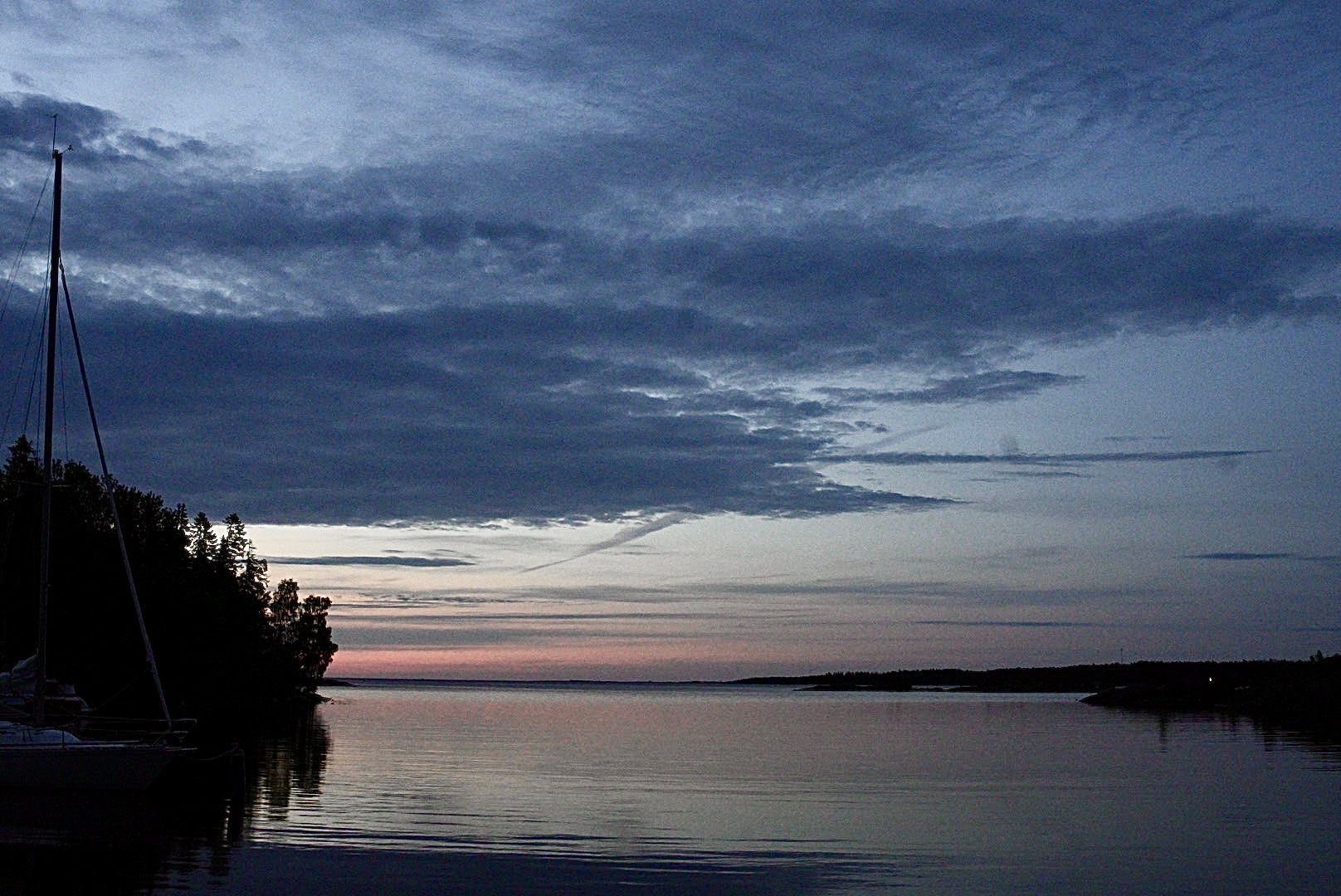 Die helle Nacht war ruhig, außer dass der Wind über den Kanal pfiff und zwei Jugendliche mit einem Hammer bewaffnet um 22:00 Uhr auf dem Steg herumklopften. (500 m weiter war eine teure Marina, vielleicht wurden die von denen als Klabautermänner angeheuert?)