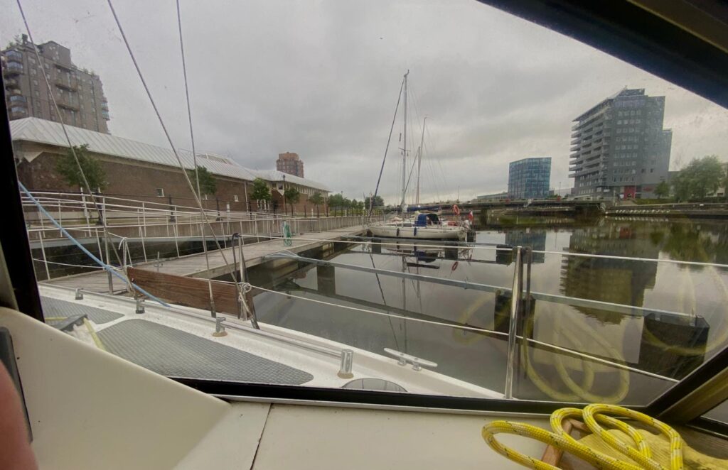 Um 5:00 Uhr ging der Anker hoch. Der Regen wurde in Kauf genommen. Hauptsache, die lange Strecke unter Segel. Und so war es auch. Nach 9 Stunden Rauschefahrt – mit maximal 8 kn mit der Welle gesurft – erreichte die Salida Gävle. Das ganze Hafenbecken ist Industrie. Die riesige Holzfabrik roch ich schon 10 sm vorher. Der Charme des Gästehafens muss auch erst gesucht werden.