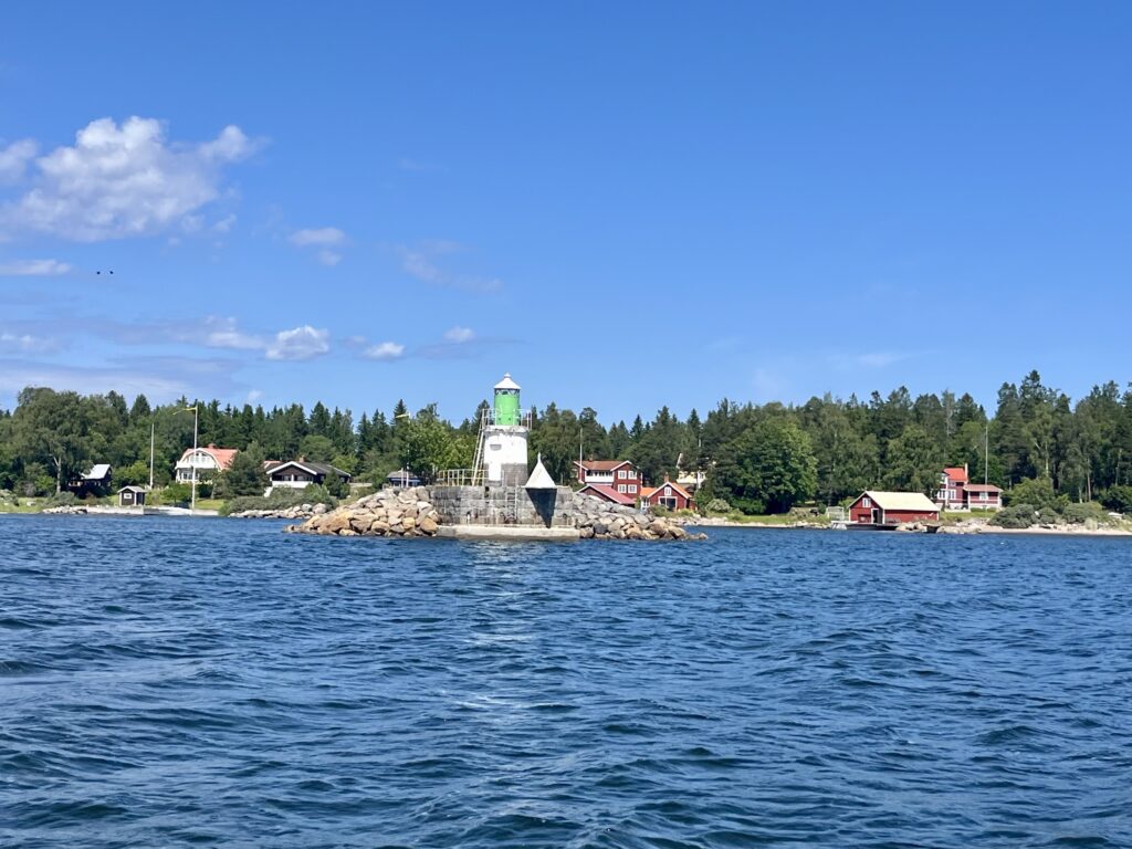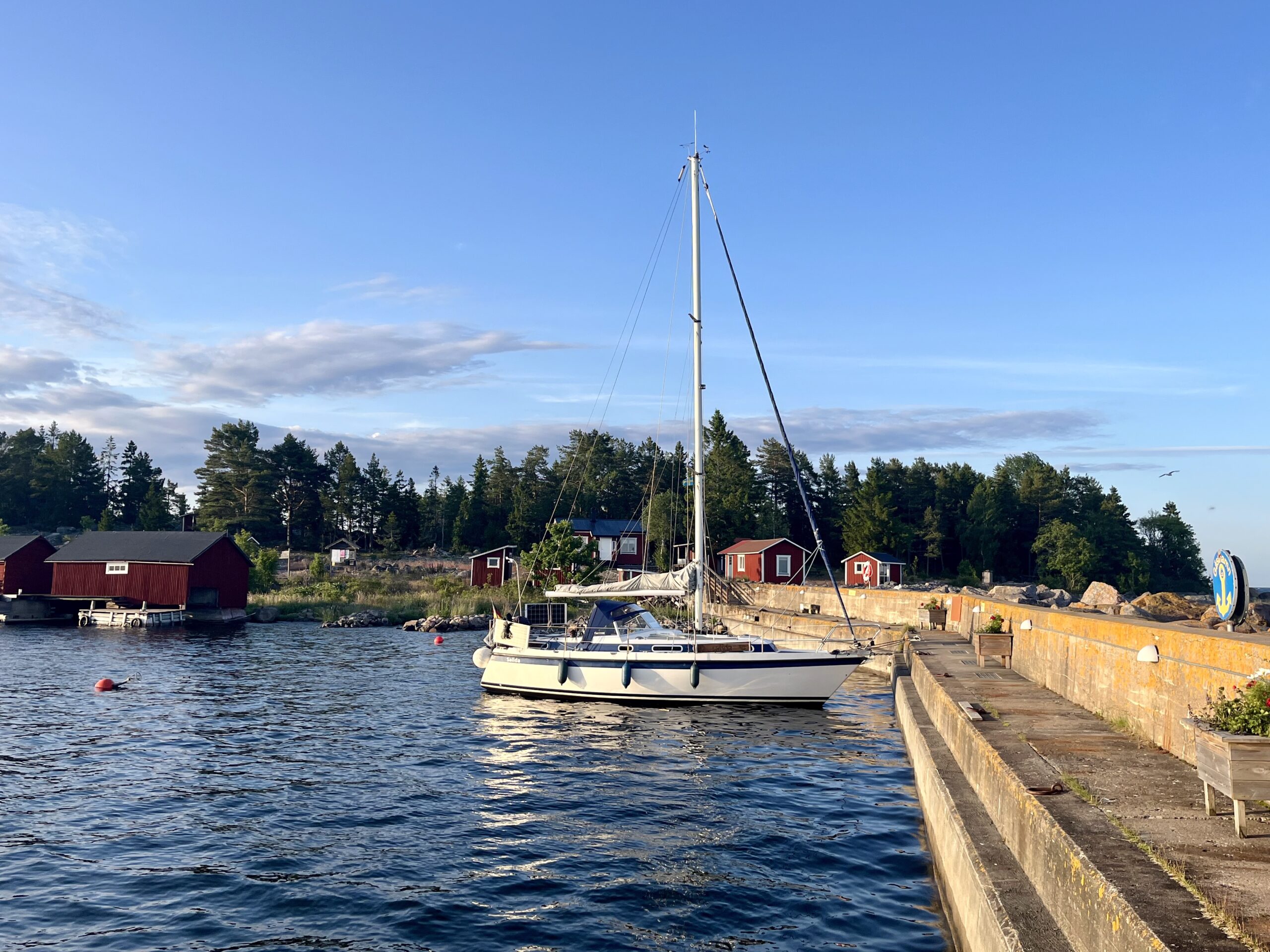 Nach einem kurzen Einkauf im ICA machten wir heute Vormittag die Leinen los für die rund 33sm zur Insel Storjungfrun. Wir hatten perfektes Segelwetter und genossen die Fahrt. Aber später nahm der Wind zu und die Wellen wurden höher – die Salida fing an zu schaukeln. So hatte ich mir das für den ersten Tag nicht vorgestellt. 😩