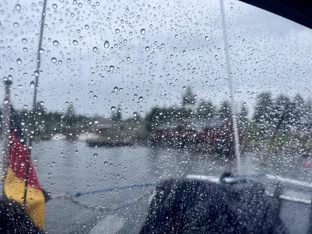 Kaum waren wir zurück auf dem Boot öffnete der Himmel alle Schleusen und es schüttete dann bis in die späteren Abendstunden. Zum Glück ohne Welle, was eine ruhige Nacht versprach.