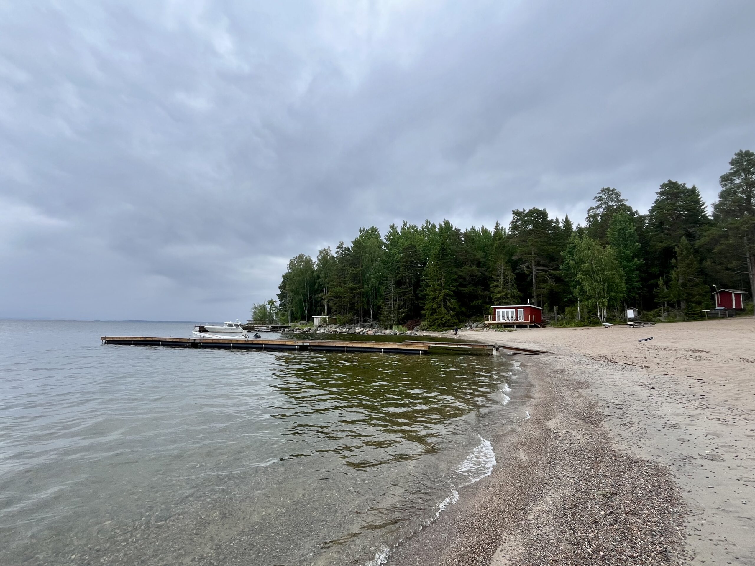 An der Westseite der Insel wartete ein Strand mit besserem Internet und einem freundlichen Local Guide auf uns, der uns sogleich frisch geangelten Fisch und einen Saunabesuch anbot. Auf letzteres verzichteten wir, denn ersteres war unser Begehr. Walter hatte sein IPad mitgenommen und wir wollten nun endlich dem Verbindungsproblem mit dem Handyhotspot auf den Grund gehen, welches unsere Blogveröffentlichung verhindert hatte. Nach längerem Hin-und-Her-Probieren traf mich endlich der entscheidende Geistesblitz. Und tatsächlich – es funzt 😄.