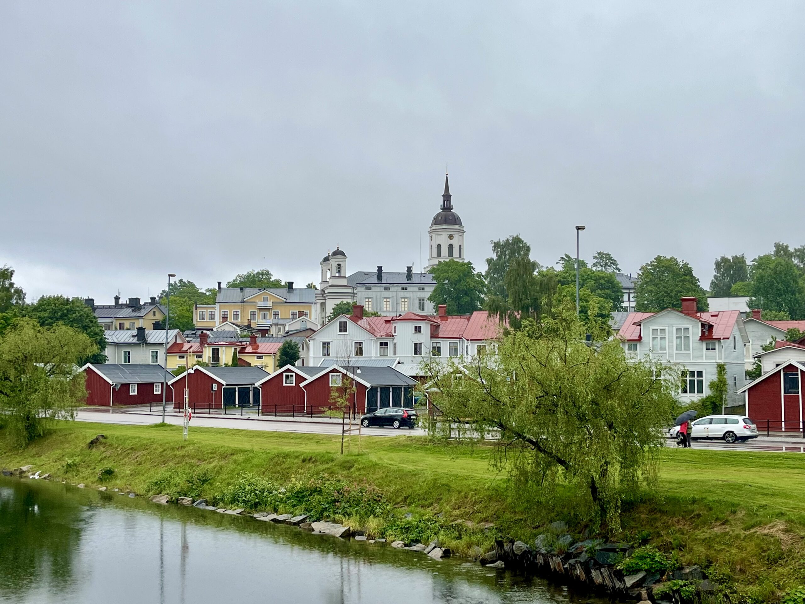 Trotz des Regenwetters bei 11 Grad stiefelten wir brav durch die Stadt und fühlten uns ziemlich einsam in den Straßen. Aber das ändert sich Ende Juli, wenn die MS Deutschland hier anlegt 😉. Die meisten Menschen begegneten uns noch in den Einkaufszentren, wo wir bei der Gelegenheit gleich noch unsere Lebensmittelvorräte auffüllten. Denn morgen endlich brechen wir auf in die Höga Kusten.