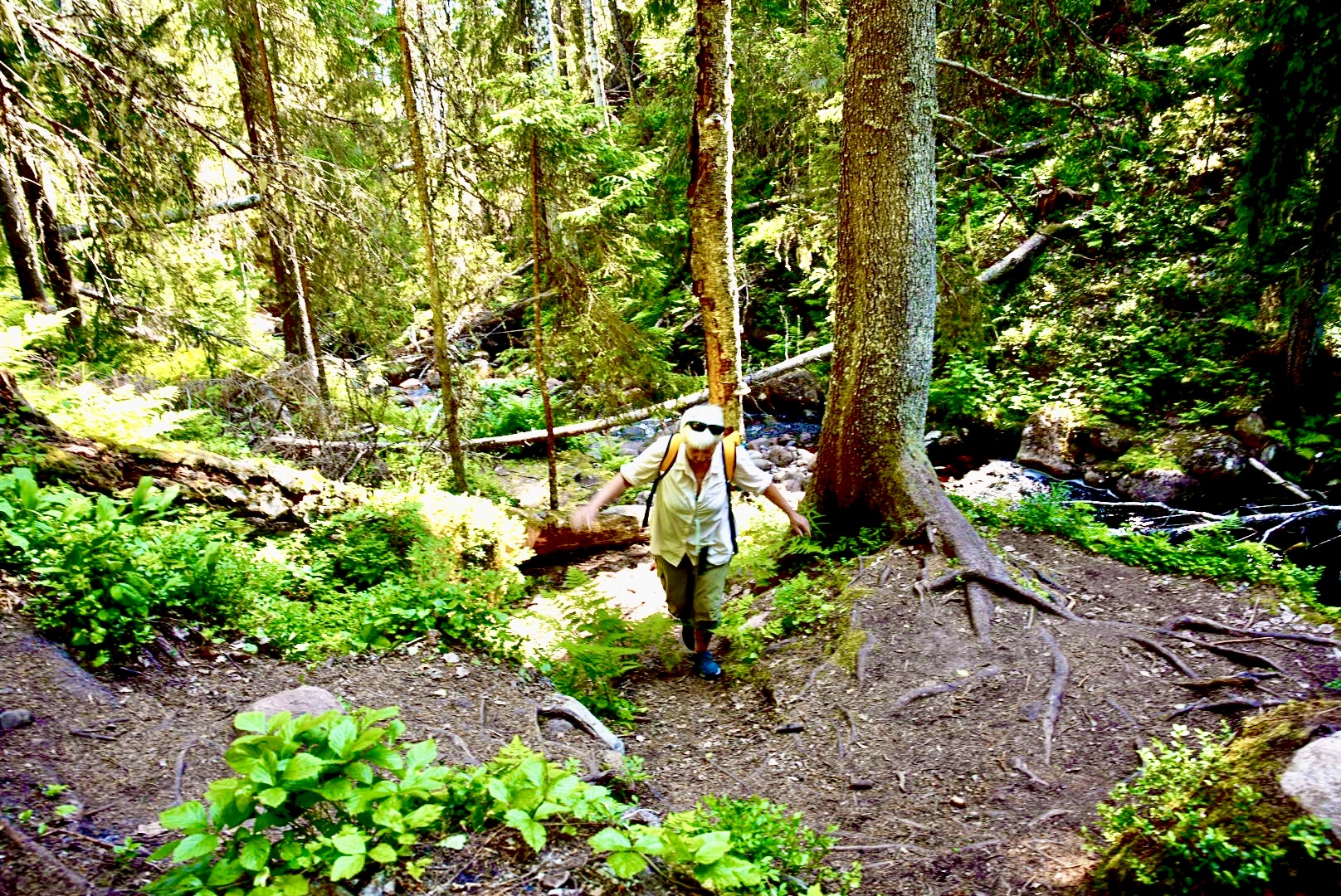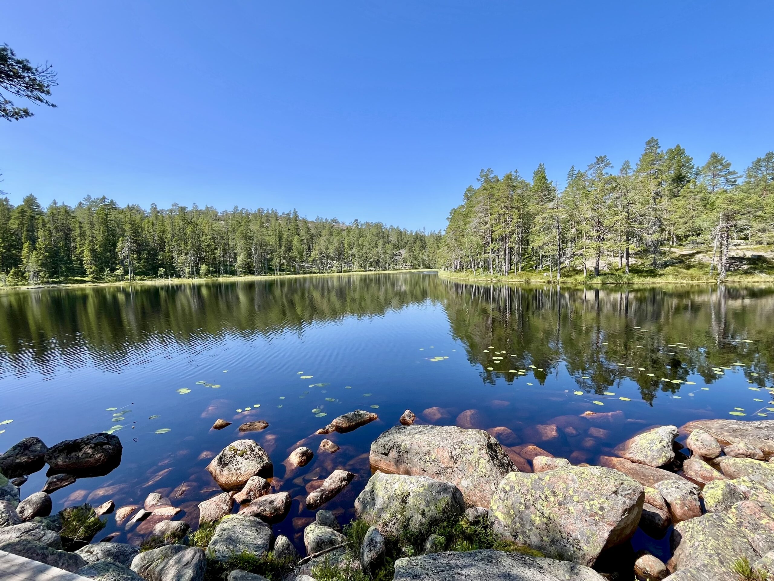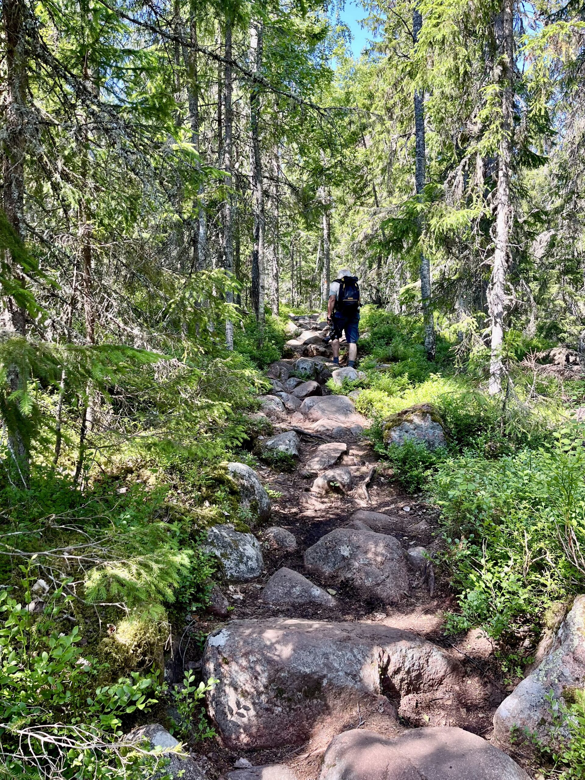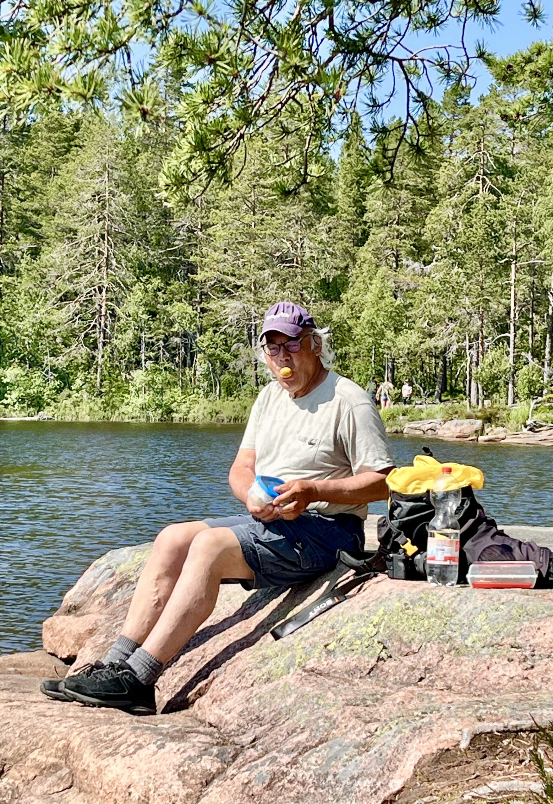 Der Weg auf den 270 m hohen Slåttdalsberget war nicht ohne, eigentlich gab‘s die meiste Zeit gar keinen richtigen Weg – siehe Überschrift. Aber wir waren hochmotiviert und wurden für unsere Mühe belohnt. Ob am rauschenden Wasserfall oder am Ufer eines der drei Seen – immer gab es was für‘s Auge und die Kameralinse. Im Tärnättvattnen auf einer Höhe von ca. 120 m konnte man baden (leider hatten wir nix mit) und am Ufer picknicken und sogar zelten. Auch eine sehr gut ausgestattete Übernachtungshütte war vorhanden.