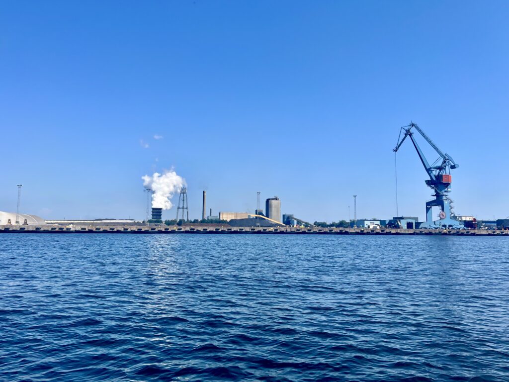 Aus Luleå raus ging es heute voll durch das Industriegebiet. Vorbei an altem und neuem Stahlwerk, an Hafenanlagen, Kohlenhalden und der Eisenerzverladung. Alles nicht so schick und einladend. Und dann – ca. zwei Seemeilen weiter – oh Wunder – plötzlich Dünen und langer Sandstrand mit Sonnenanbetern und Badelustigen. Das hatten wir nicht erwartet.