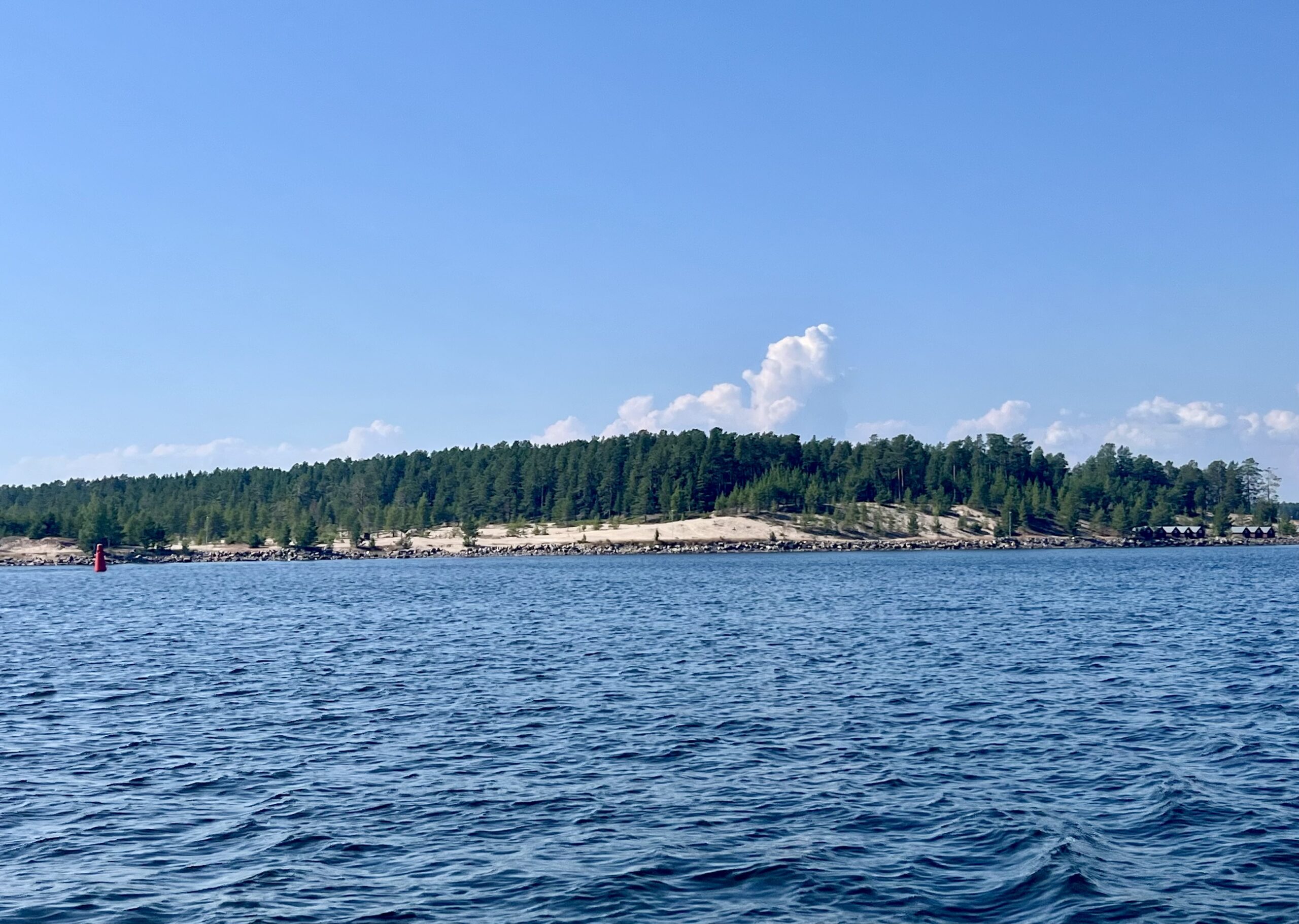Aus Luleå raus ging es heute voll durch das Industriegebiet. Vorbei an altem und neuem Stahlwerk, an Hafenanlagen, Kohlenhalden und der Eisenerzverladung. Alles nicht so schick und einladend. Und dann – ca. zwei Seemeilen weiter – oh Wunder – plötzlich Dünen und langer Sandstrand mit Sonnenanbetern und Badelustigen. Das hatten wir nicht erwartet.