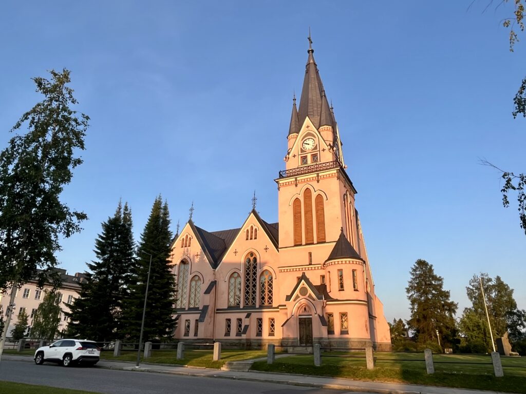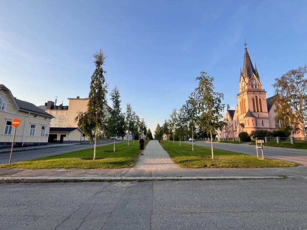 Kemi, gegründet von Alexander dem Großen, ist quadratisch – praktisch – gut . Alle Straßen sind rechtwinklig angeordnet und die meisten wirken überdimensioniert (vierspurig für geschätzt 10 Autos in der Stunde). Da ist auf jeden Fall viel Platz zum Üben😉. Aber wir haben gelernt, dass das damals wegen der vielen Brände so gemacht wurde. Aus diesem Grund wurden auch hier wieder viele Birkenhaine in der Stadt angelegt. Was auffällt, sind die vielen Grünflächen, teils angelegt, teils wild, mit Bäumen und Blumen sowie große Spiel- und Sportplätze. Sogar ein neues Fußballstadion bekommt Kemi. Zwischen den vielen Betonbauten findet man noch das eine oder andere schöne Holzhaus, aber Neubauten überwiegen. Beeindruckend fand ich die schöne Kirche, die musste ich von allen Seiten fotografieren. Heute konnten wir sogar hinein und wurden mit Orgelklängen begrüßt.