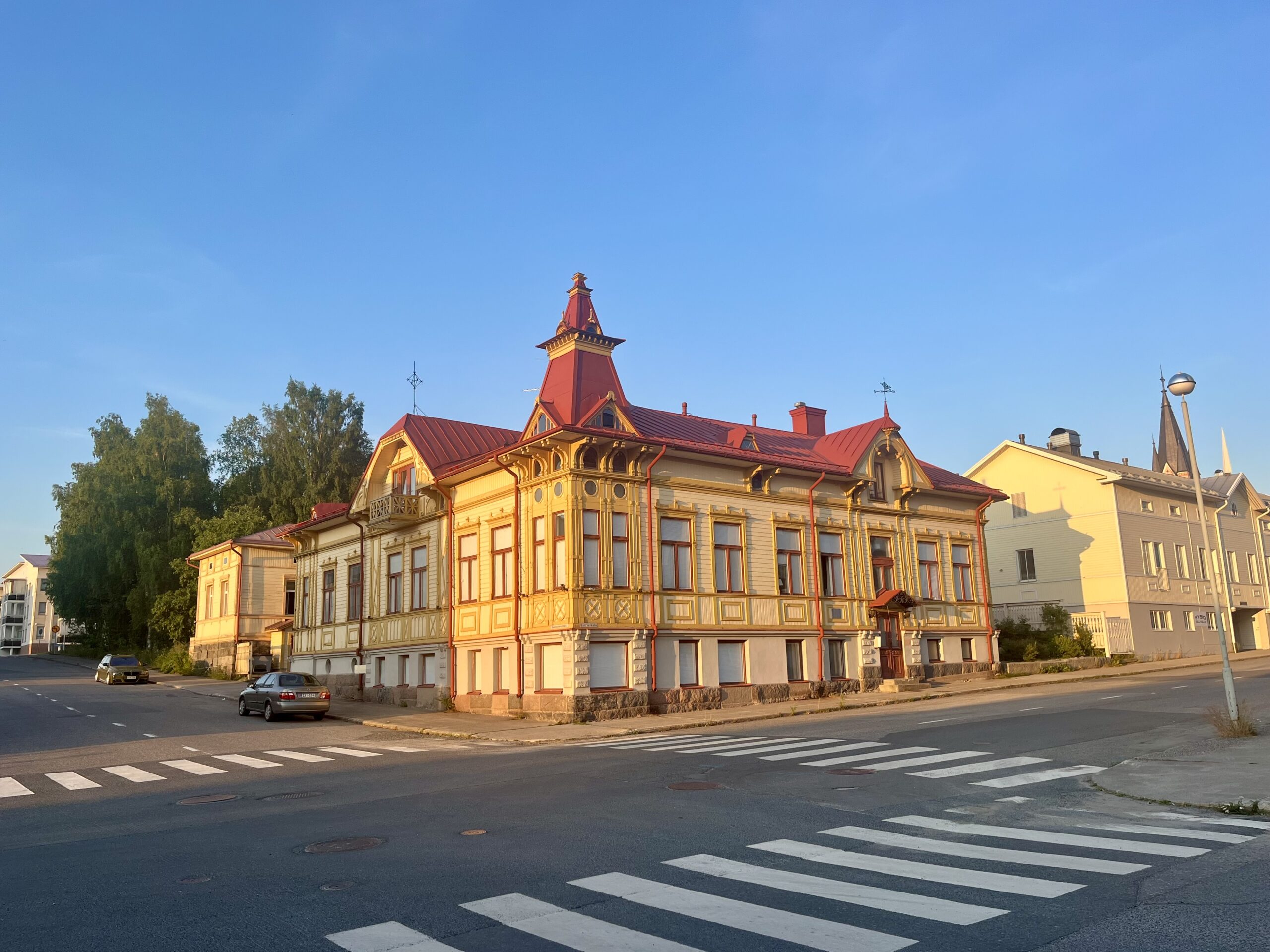 Kemi, gegründet von Alexander dem Großen, ist quadratisch – praktisch – gut . Alle Straßen sind rechtwinklig angeordnet und die meisten wirken überdimensioniert (vierspurig für geschätzt 10 Autos in der Stunde). Da ist auf jeden Fall viel Platz zum Üben😉. Aber wir haben gelernt, dass das damals wegen der vielen Brände so gemacht wurde. Aus diesem Grund wurden auch hier wieder viele Birkenhaine in der Stadt angelegt. Was auffällt, sind die vielen Grünflächen, teils angelegt, teils wild, mit Bäumen und Blumen sowie große Spiel- und Sportplätze. Sogar ein neues Fußballstadion bekommt Kemi. Zwischen den vielen Betonbauten findet man noch das eine oder andere schöne Holzhaus, aber Neubauten überwiegen. Beeindruckend fand ich die schöne Kirche, die musste ich von allen Seiten fotografieren. Heute konnten wir sogar hinein und wurden mit Orgelklängen begrüßt.