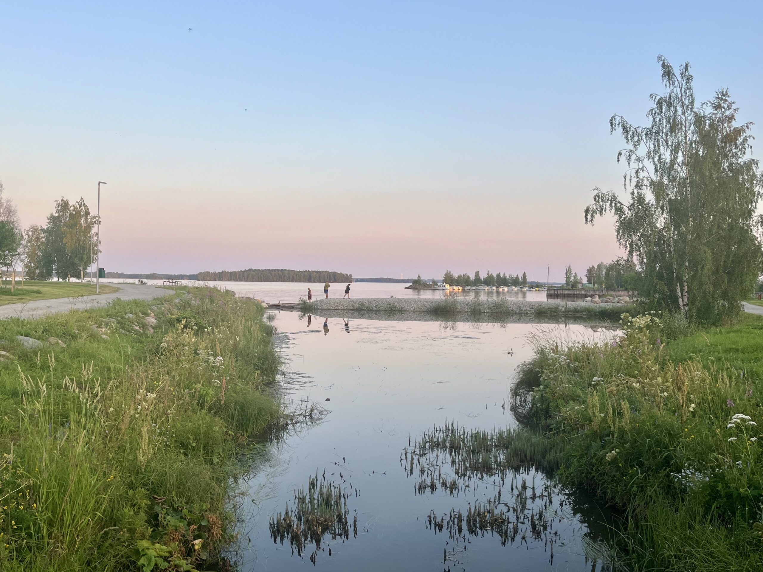 Am Hafen feiern die Finnen den Sommer und wir gönnen uns eine Pizza. Meine ist mit Rentierschinken belegt, schmeckt irgendwie „wild“. Obwohl erst Donnerstag ist, kann man in zwei von den zahlreichen kleinen Kneipen am Hafen den Abend bei Livemusik genießen. Uns gefällt, was wir hören, und fühlen uns bei den herzlichen Finnen willkommen. Wir sind die einzigen Deutschen hier und werden oft neugierig angesprochen. Im Hafen wurde heute sogar uns zu Ehren die deutsche Flagge aufgezogen 😊.