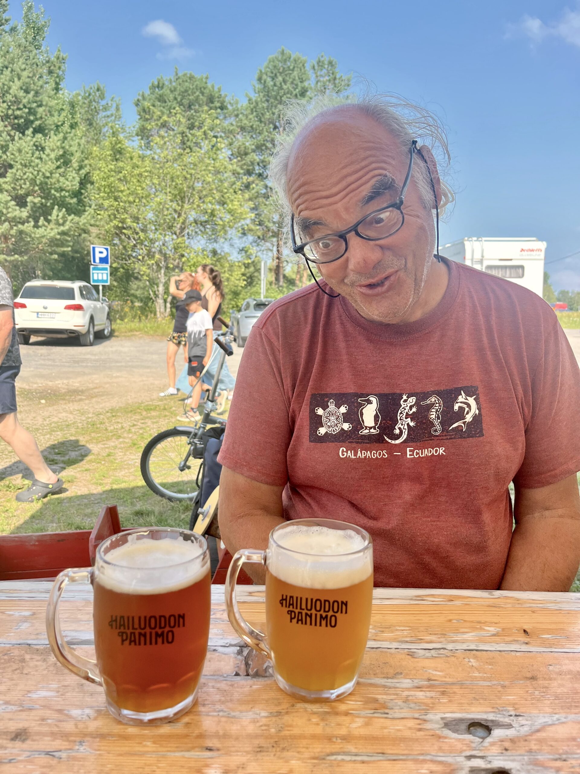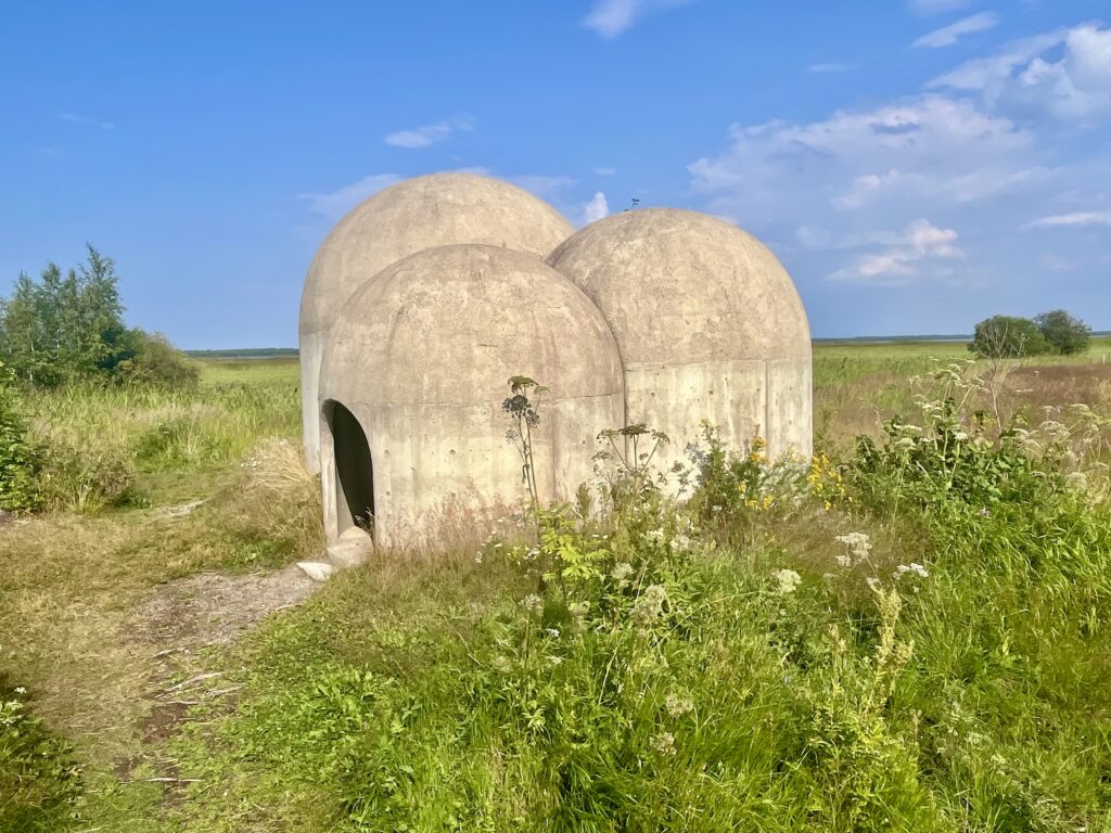 Auf unserer Radtour heute kamen wir an einer extravaganten Kirche im Finnhüttenstil vorbei. Sie scheint als eine Art Treffpunkt für Kulturschaffende der Insel zu fungieren, bis das geplante Kulturzentrum fertiggestellt ist. In einer kleinen Inselbrauerei ein paar Kilometer weiter wird echt leckeres Bier gebraut. Wir wussten gar nicht, welche der angebotenen sieben Sorten wir zuerst probieren sollten, aber wir wollten auch nicht versumpfen. Unser Ziel war ein sogenanntes Organum am anderen Ende der Insel. Ich konnte mir erstmal nicht viel darunter vorstellen, aber Fotos hatten mich neugierig gemacht. Hailuoto Organum ist ein spezielles Raumkunstwerk. Die Skulptur besteht aus drei miteinander verbundenen Kuppeln unterschiedlicher Größe. Jede Kuppel hat eine eigene Resonanz, die einem Ton entspricht und als natürlicher Klangverstärker fungiert. Naja, das ist die Theorie, Walter hat es natürlich gleich ausprobiert 🤣.
