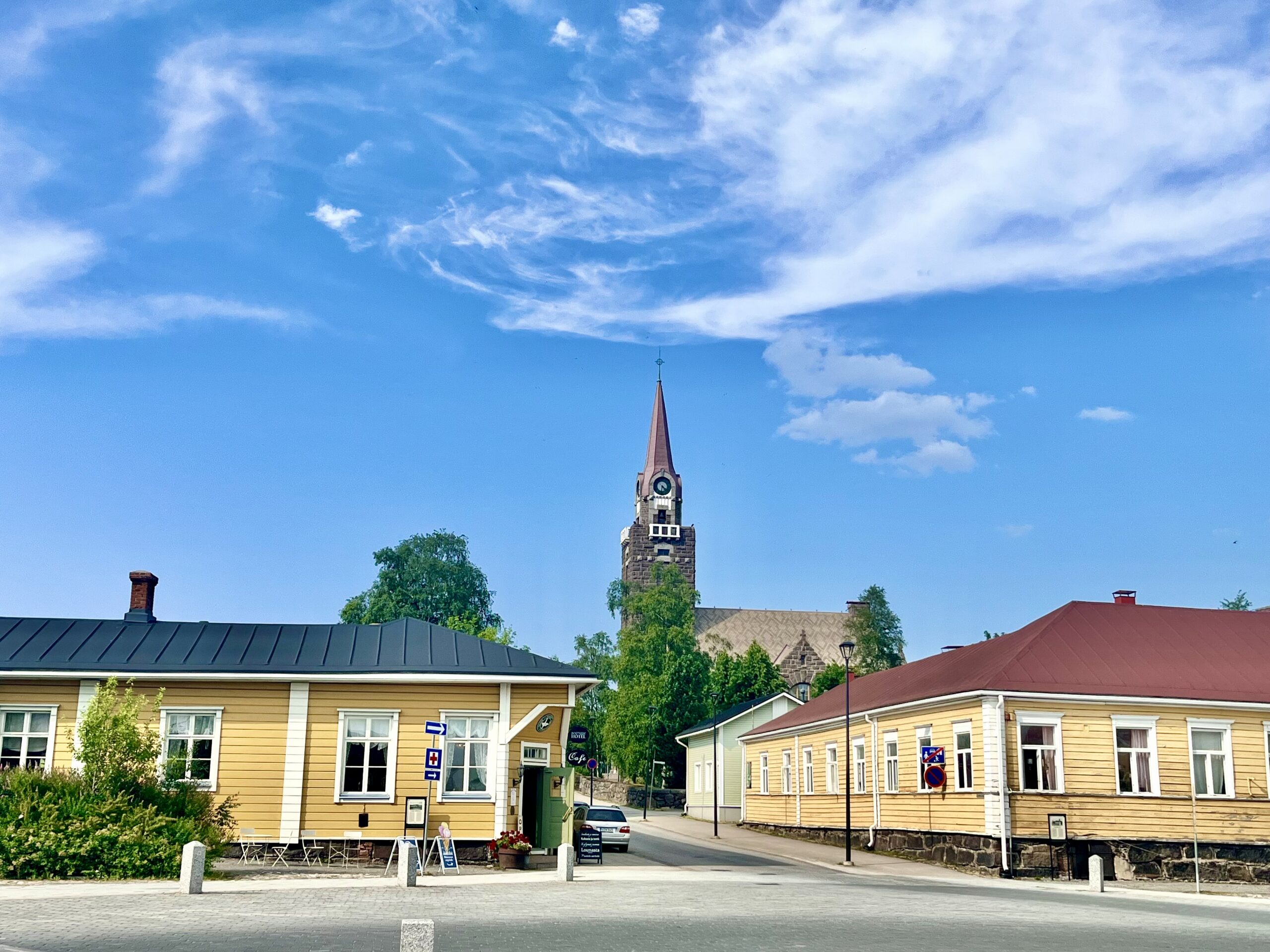 Klar war, dass wir bei diesen Temperaturen keine ausgedehnte Stadtbesichtigung machen würden. Im Hafen gab es Fahrräder auszuleihen (waren in der Hafengebühr inklusive), sodass wir unsere nicht auszuladen brauchten, um die knapp 3 km in die Stadt zu radeln. Die uns ans Herz gelegte Altstadt von Raahe ist eines der ältesten Holzviertel Finnlands und hat heute noch 152 Holzhäuser. Die Stadt wurde nach einem Großbrand im 19. Jahrhundert fast vollständig zerstört. Der Aufbau erfolgte nach einem von der Renaissance inspirierten Stadtplan – quadratisch, praktisch, gut. Das kennen wir ja bereits von Kemi. Nur die Birken fehlen.