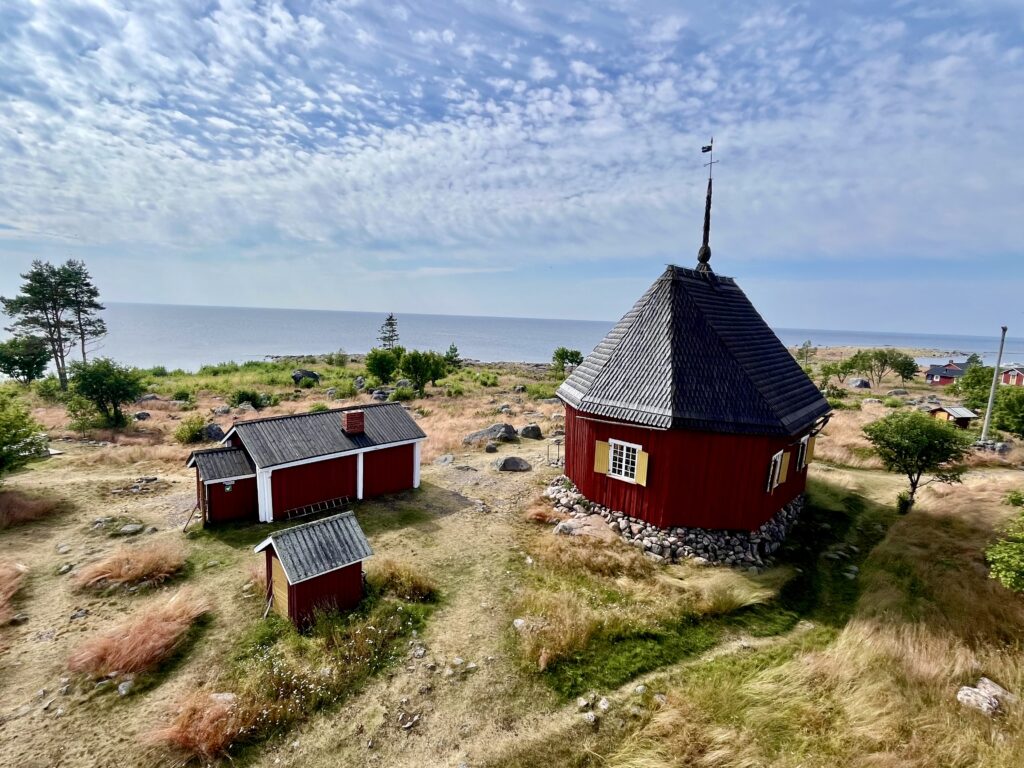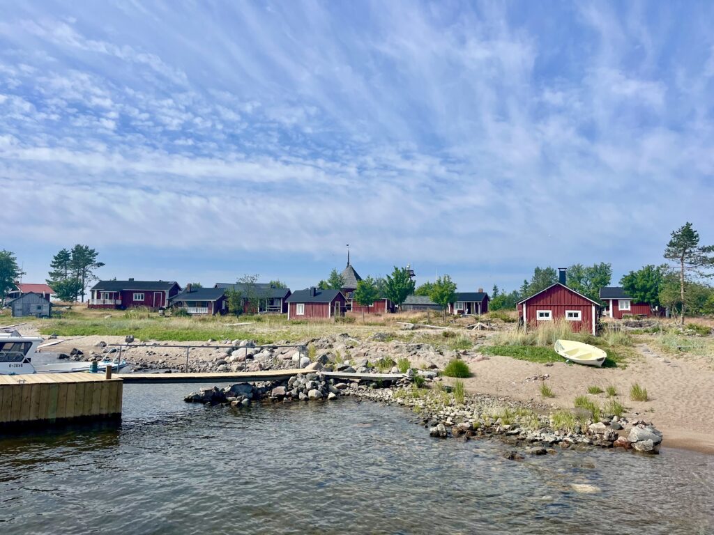 Maakalla ist vor ca. 600 Jahren aus dem Meer aufgetaucht und wurde von Fischern in Beschlag genommen. Es gibt keine Zäune, weil das Land allen gehört und die Hütten dürfen nicht verkauft, sondern nur vererbt werden. Einige der Fischerhütten werden heute als Ferienhäuser genutzt. Es gibt eine Kapelle und ein kleines Museum. Zwei Ausflugsschiffe bringen mittags für ein paar Stunden Besucher auf die Insel. Der Hafen ist sehr klein. Es gibt zwar zwei Stege, das Wasser ist dort aber für uns nicht tief genug. Also müssen wir am Pier der Ausflugsschiffe festmachen und rechtzeitig vor deren Eintreffen wieder wegfahren. Das hieße für uns heute konkret eine knappe Stunde Zeit für eine schnelle Besichtigungsrunde. Theoretisch kann man später wieder zurückkommen und dann am Pier übernachten, das wollten wir aber nicht. Gesegelt sind wir heute leider aus den bekannten Gründen wieder nicht ☹️.