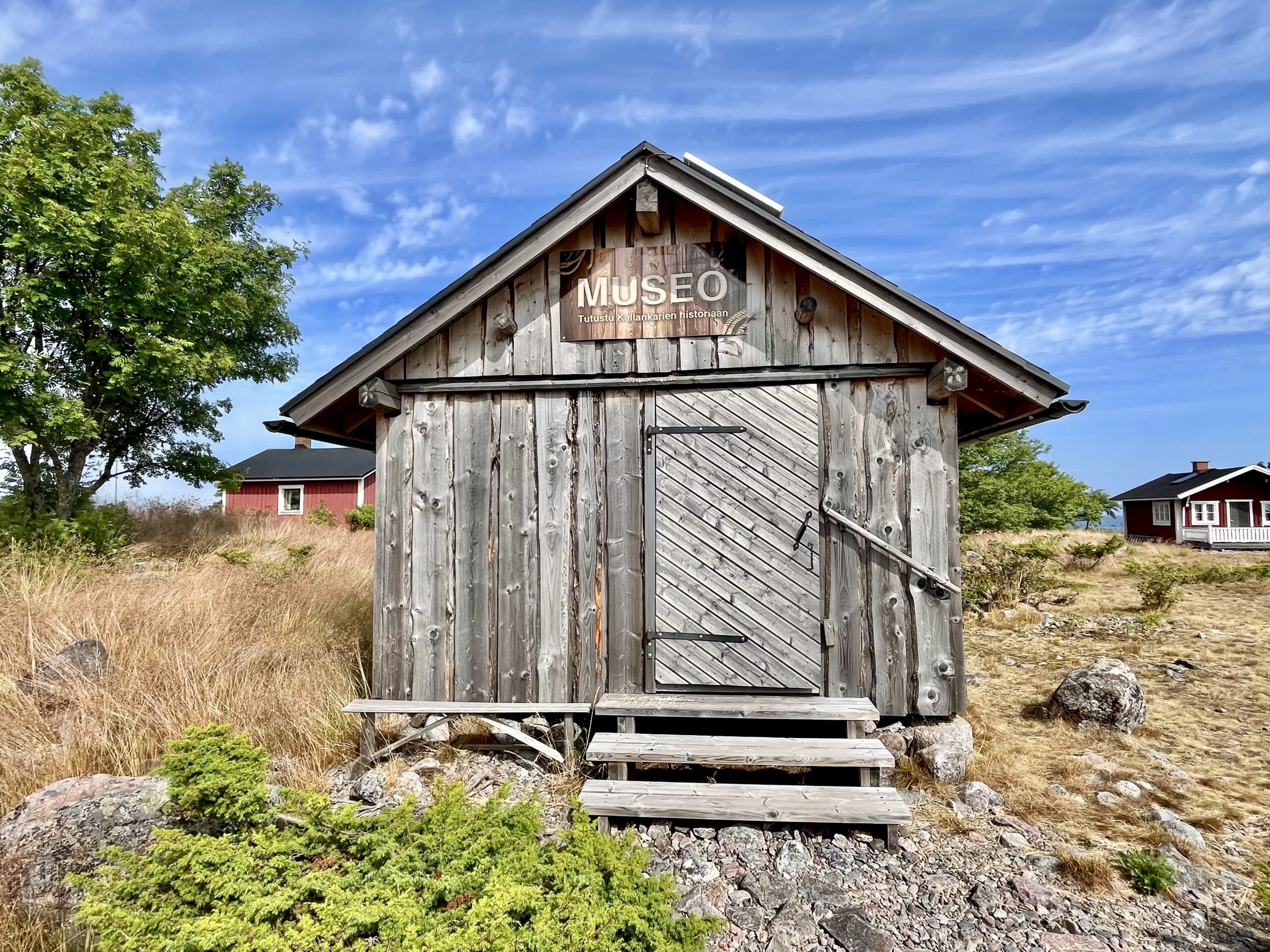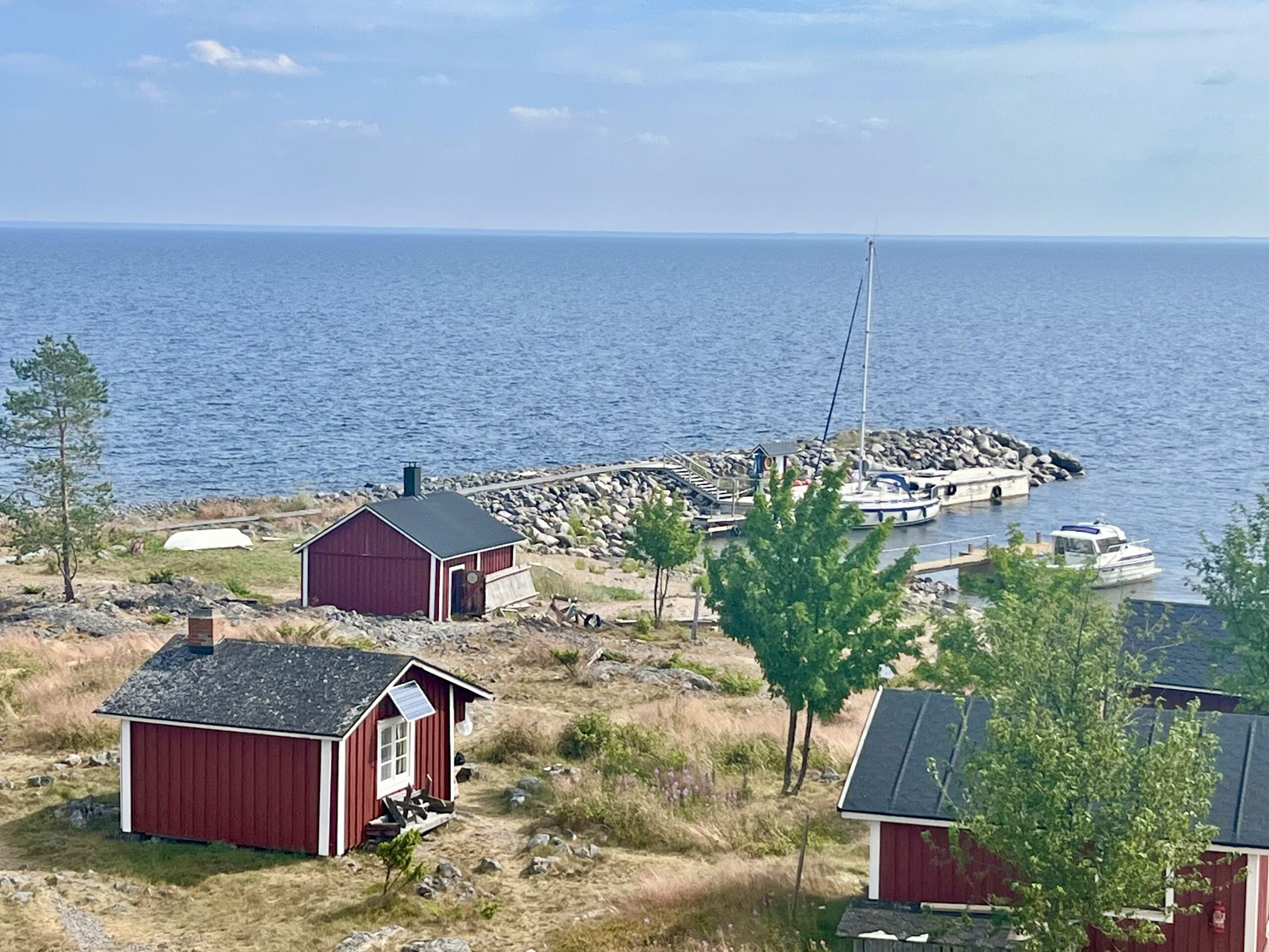 Maakalla ist vor ca. 600 Jahren aus dem Meer aufgetaucht und wurde von Fischern in Beschlag genommen. Es gibt keine Zäune, weil das Land allen gehört und die Hütten dürfen nicht verkauft, sondern nur vererbt werden. Einige der Fischerhütten werden heute als Ferienhäuser genutzt. Es gibt eine Kapelle und ein kleines Museum. Zwei Ausflugsschiffe bringen mittags für ein paar Stunden Besucher auf die Insel. Der Hafen ist sehr klein. Es gibt zwar zwei Stege, das Wasser ist dort aber für uns nicht tief genug. Also müssen wir am Pier der Ausflugsschiffe festmachen und rechtzeitig vor deren Eintreffen wieder wegfahren. Das hieße für uns heute konkret eine knappe Stunde Zeit für eine schnelle Besichtigungsrunde. Theoretisch kann man später wieder zurückkommen und dann am Pier übernachten, das wollten wir aber nicht. Gesegelt sind wir heute leider aus den bekannten Gründen wieder nicht ☹️.