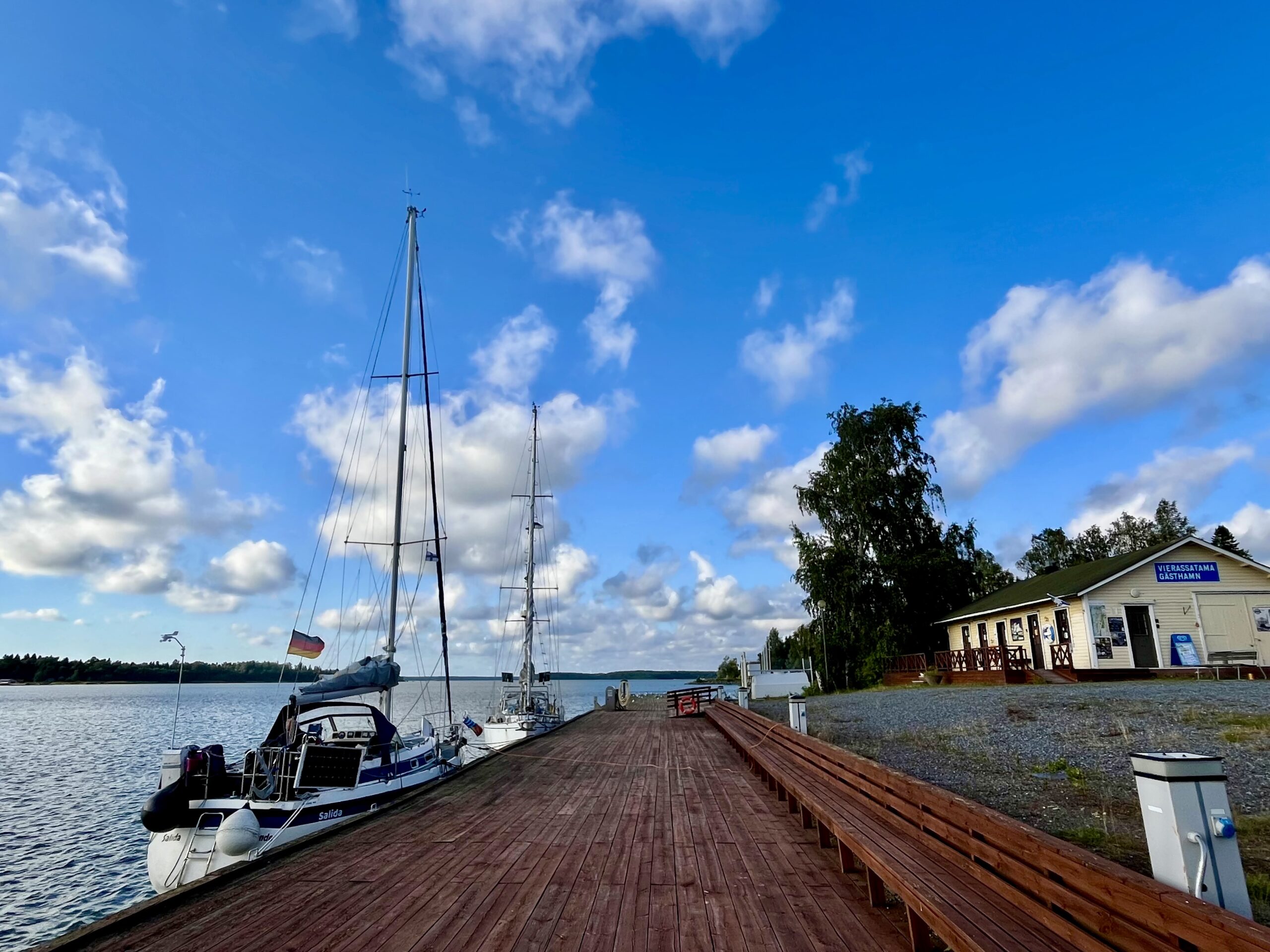 Heute sind wir weitergefahren und haben nach acht anstrengenden Stunden und 30 Seemeilen den kleinen Ort Kaskinen erreicht. Gut war, dass wir segeln konnten; schlecht, dass wieder ein Abschnitt Gegenangestampfe und Wellenschaukelei dabei war. Für Walter war’s ok, für mich grenzwertig. Ich bin halt eher der Schönwettersegler 😉. Aber das soll ich ja morgen kriegen, wenn der Wind auf Nordwest dreht. Dann soll die zurückgelegte Strecke auch etwas länger werden, bis zur Marina Merilokki Oy in Reposaari wollen wir kommen.