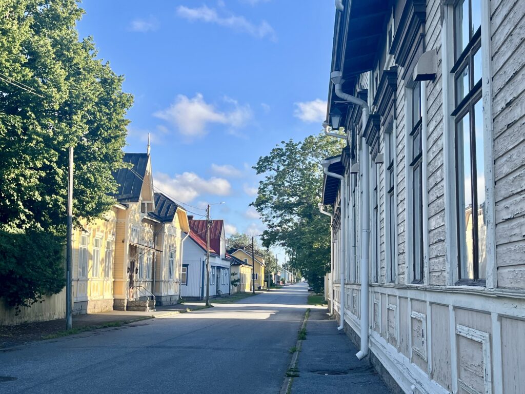 Die Straßen verlaufen wie bei vielen finnischen Städten rechtwinklig zueinander. Mir ist aufgefallen, dass etliche der Holzhäuser leer stehen und vor sich hin dümpeln. Schade eigentlich.
