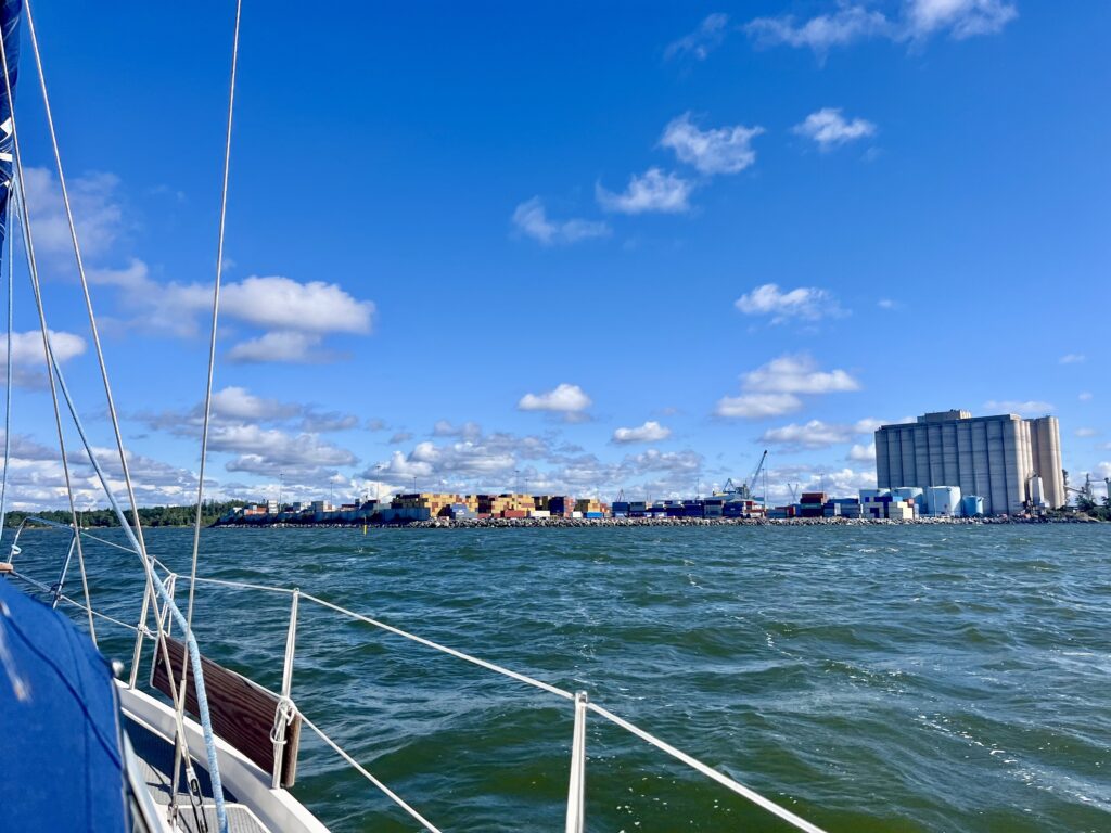 Heute war Rauma das Ziel, 36 Seemeilen mit Sonne und Wind aus verschiedenen Richtungen. Zuerst kam der Wind gegenan aus Süd, drehte dann aber bald auf West, sodass wir ein gutes Stück recht gemütlich segeln konnten. Später frischte der Wind mit bis zu 6 Windstärken ordentlich auf und ließ uns einige Meilen recht sportlich zurücklegen. Auf den letzten Seemeilen schaukelten und geigten wir mit achterlichem Wind und klirrenden Geschirrschränken Rauma entgegen.