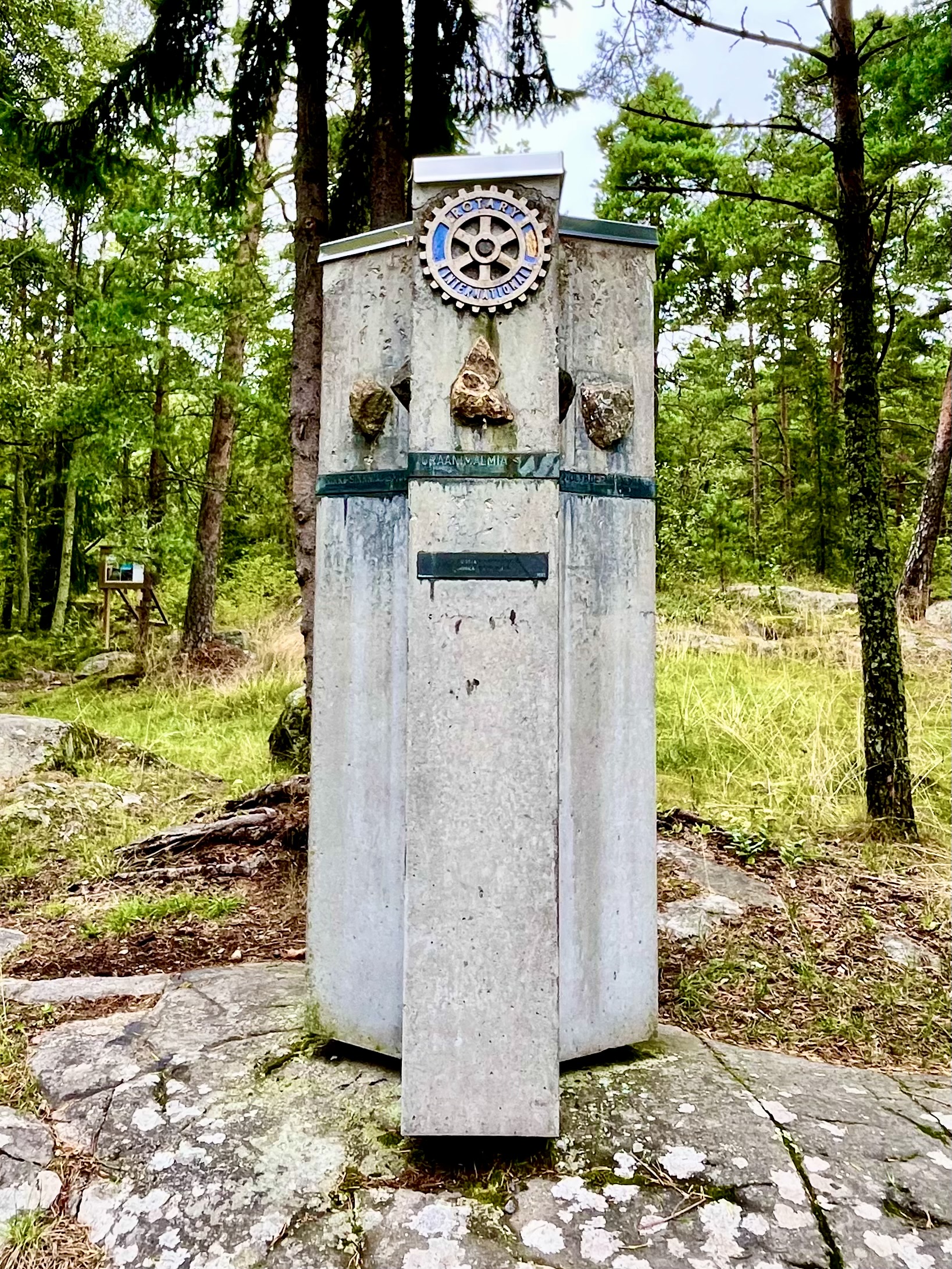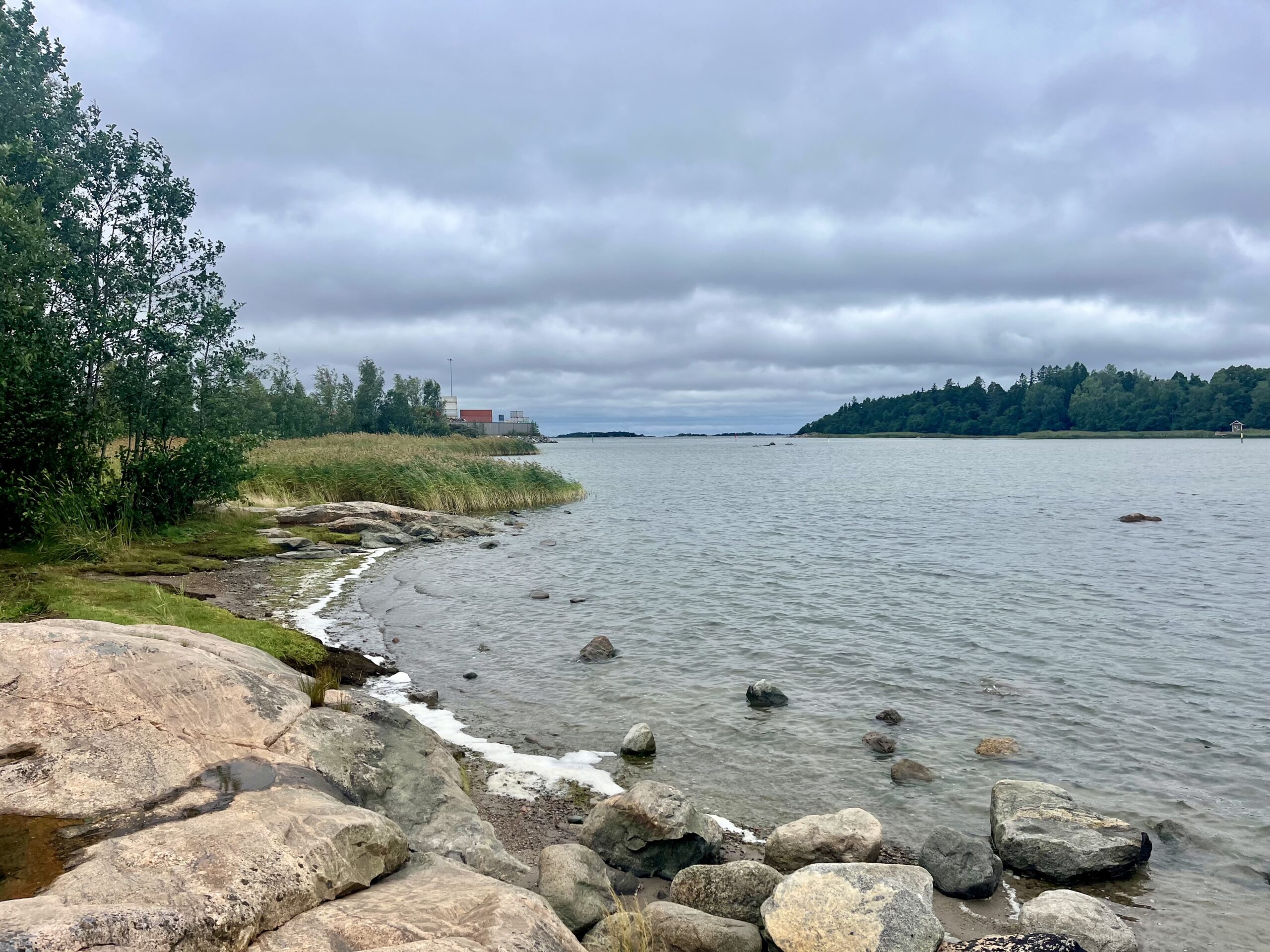 Nach dem Frühstück hielt uns drinnen nichts mehr – unsere Füße wollten bewegt werden. Die angrenzende Landzunge hatten wir schon vor zwei Tagen mit dem Fahrrad gestreift, heute wollten wir die Waldwege im ausgewiesenen „Rotary Park“ zu Fuß erkunden. Der Weg führte einmal rund um die Landzunge, mal hoch auf Felsen mit Blick auf die Zufahrt zum Hafen, mal runter in den mit Blaubeer- und Preiselbeerbüschen gespickten Wald. Zu Walters Freude sind wir über ein paar Pfifferlinge gestolpert, die natürlich in die mitgeführte Plastikbox gewandert sind.