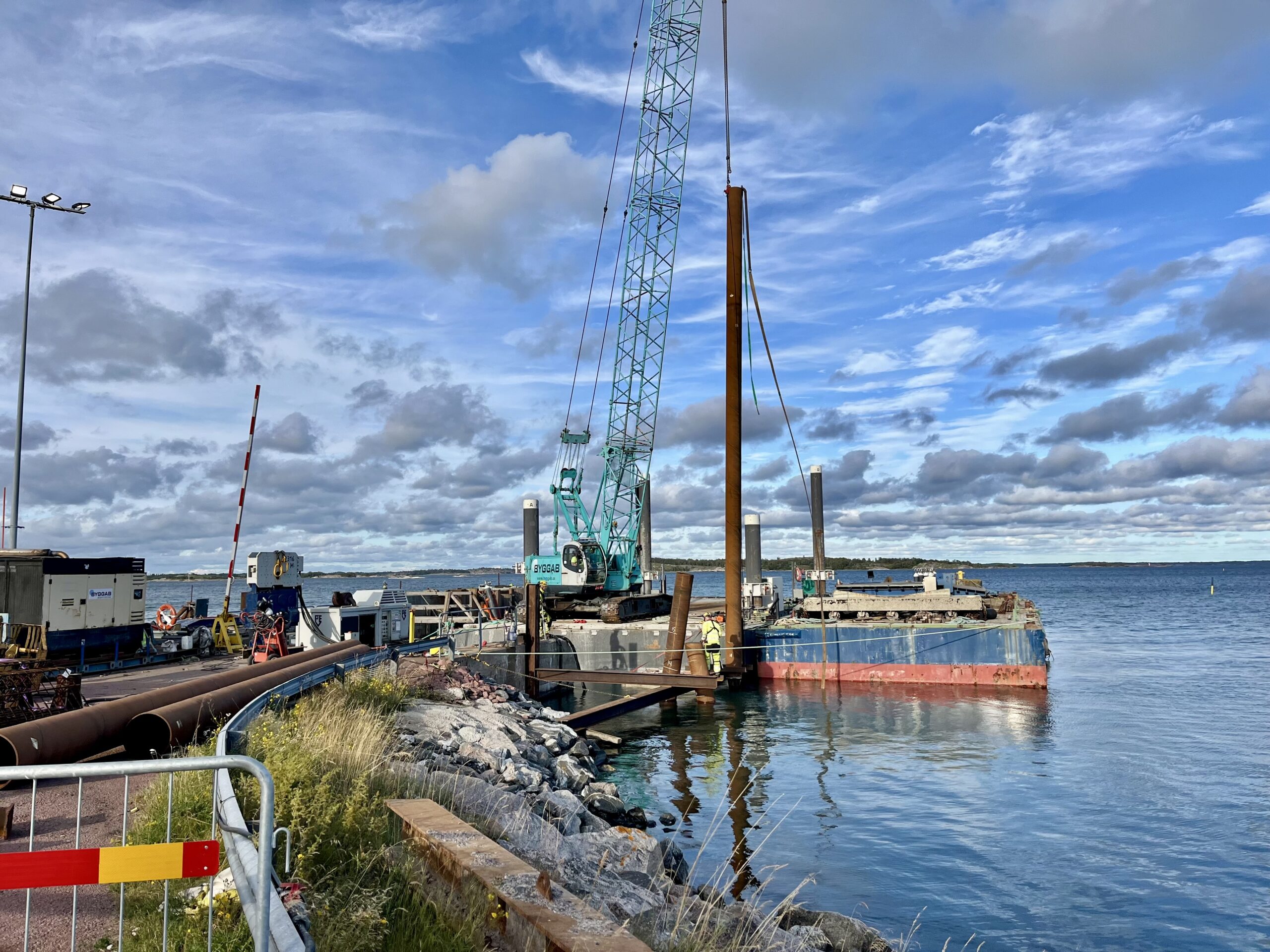 Die Idylle leidet gerade etwas, denn im Hafen wird mit ziemlich viel Krach ein neuer Fähranleger gebaut. Aber die Jungs machen 20 Uhr Feierabend und Ruhe ist.